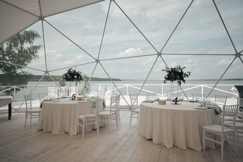 Сам шатёр идеально подходит для мероприятий любого формата: свадебных торжеств, корпоративов, презентаций, конференций, мастер-классов.