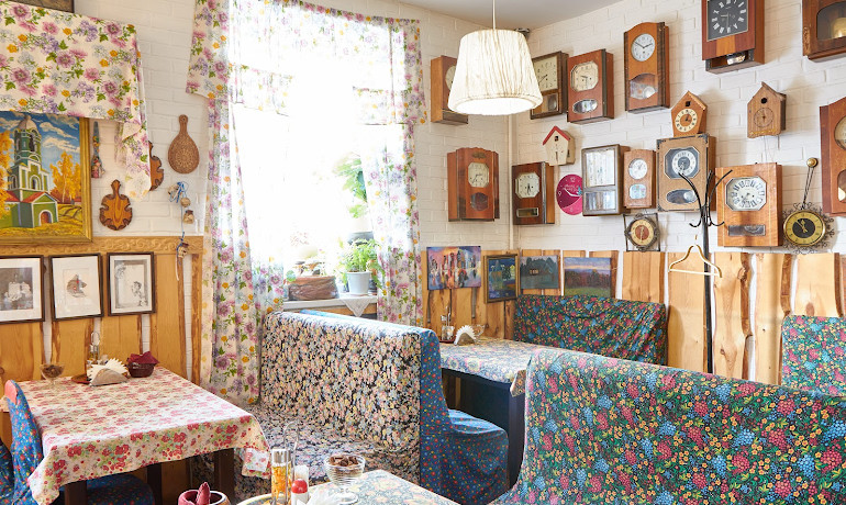 Кафе «Матушка» представляет собой кафе-музей в русском стиле.